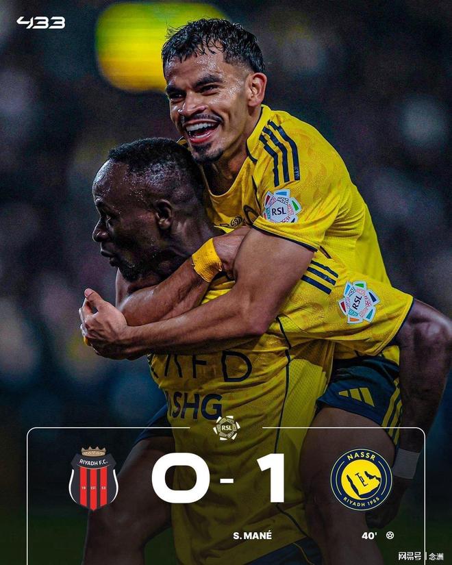 沙特联第20轮,利雅得胜利客场1-0利雅得体育,先赛情况下追平新月,以净胜球优势升到榜首。C罗未进入大名单,马内接菲利克斯挑传凌空抽射破门,哈纳姆头球中框。